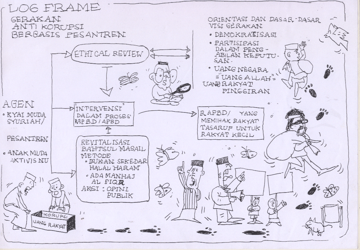 Ujung tombak dari Gerakan Anti Korupsi Berbasis Pesantren ini adalah Kyai Muda, pengurus pesantren, atau aktivis NU. Ada tiga hal, paling tidak, yang bisa dilakukan. Pertama, Gerakan Anti Korupsi ini adalah gerakan berbasis etis dengan nilai-nilai moral kepesantrenan dengan orientasi dasar-dasar visi gerakan seperti; demokratisasi, partisipasi dalam pengambilan keputusan, prinsip bahwa uang negara sama dengan uang Allah yang sama dengan uang rakyat (pinggiran).